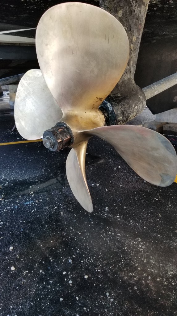The early work while ‘on the hard’ focuses on the bottom, anodes, through hulls and props/shafts. Cleaning, sanding, prepping for paint and the annual research into how best to coat the props and shafts to protect from barnacles. Despite the many solutions available, and the religious fervor individuals have to their preferred method, I have yet to find an answer that requires any less elbow grease, a good sander and some barnacle cleaner at the end of the season.