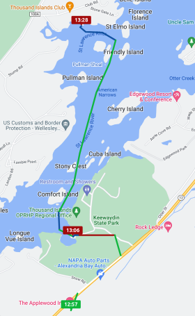 Our crossing included a stop in Clayton, NY for fuel as it is well understood that fuel prices are even higher in Canada. Hard to believe given we paid $7.14/gallon!!! I was expecting something like that and so did not have a stroke, but it sure did give pause. The run to Kingston was chilly, the water 61 degrees and Lyn donned a blanket just about as we were crossing the border. But a more pleasant crossing one could not have. Little traffic, zero commercial shipping, minimal wind and flat seas.